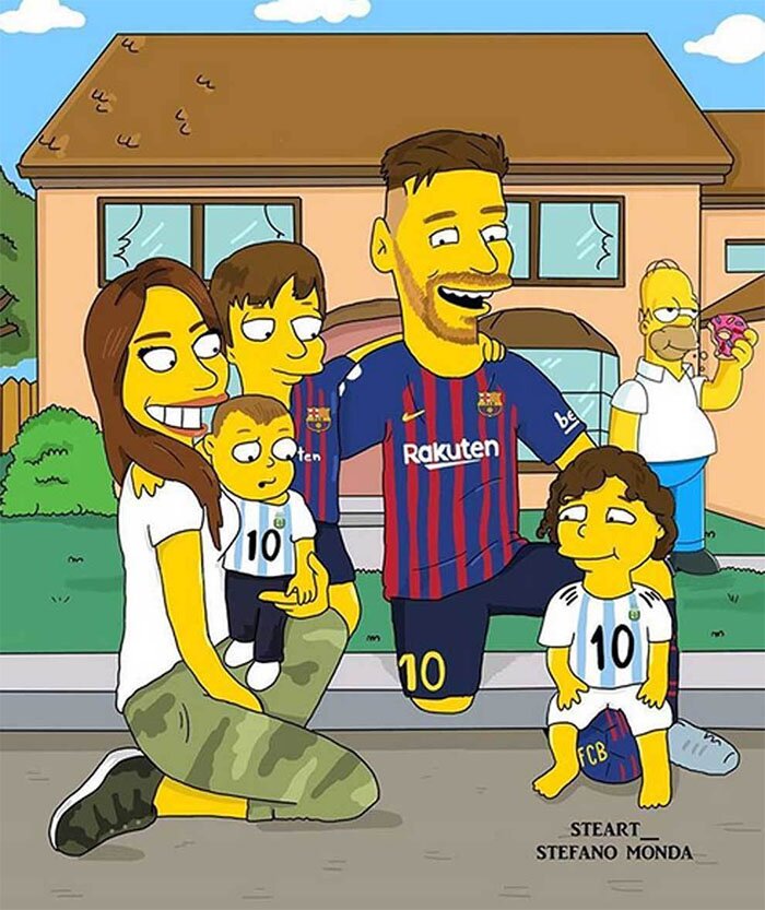Ilustrator lain, Stefano Monda, juga melalukan serupa. Ia juga menggambar keluarga Messi ke keluarga Simpsons. Film seripa ou serta bintang olahraga lainnya.