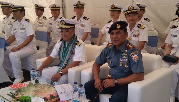 Kapal perang JS Chiyoda yang di Komandani Commander Shinobu Watanabe ini tiba pukul 8.30 Wib. Kehadiran pasukan AL Jepang ini disambut dengan tarian Mojang Periangan dari Sanggar Manunggal Cipta mandiri Surabaya.