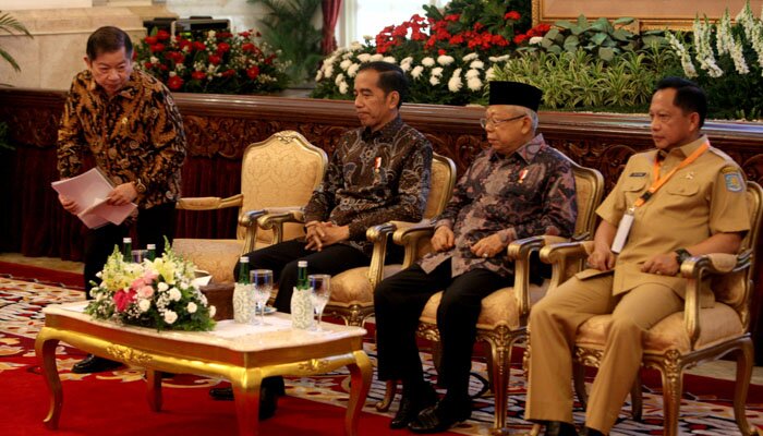 Presiden Jokowi, Wapres KH. Ma’ruf Amin, dan Mendagri Tito Karnavian saat pembukaan Musrenbangnas di Istana Negara.(rihadin)