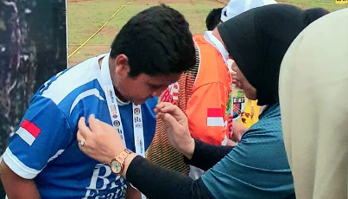 Dafa saat menerima pengalungan medali emas.(ist)