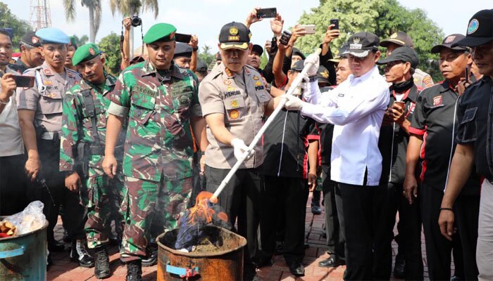 Pada apel gelar pasukan ini , kepolisian juga melakukan pemusnahan barang bukti berupa minuman keras (Miras) dan narkotika yang sudah memiliki kekuatan hukum tetap di pengadilan.