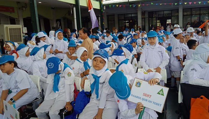 JAKARTA – Wakil Walikota Jakarta Selatan, Isnawa Adji melantik 629 dokter kecil dari 20 Sekolah Dasar (SD) se-Kecamatan Tebet. Para dokter kecil dilantik setelah mengikuti rangkaian acara pelantikan di SDIT Al-Ittihad Kelurahan Tebet Barat Jalan Tebet Mas Indah I RT 08/02, Kecamatan Tebet, Jakarta Selatan.