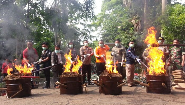 Pembakaran ganja oleh petugas.(anton)